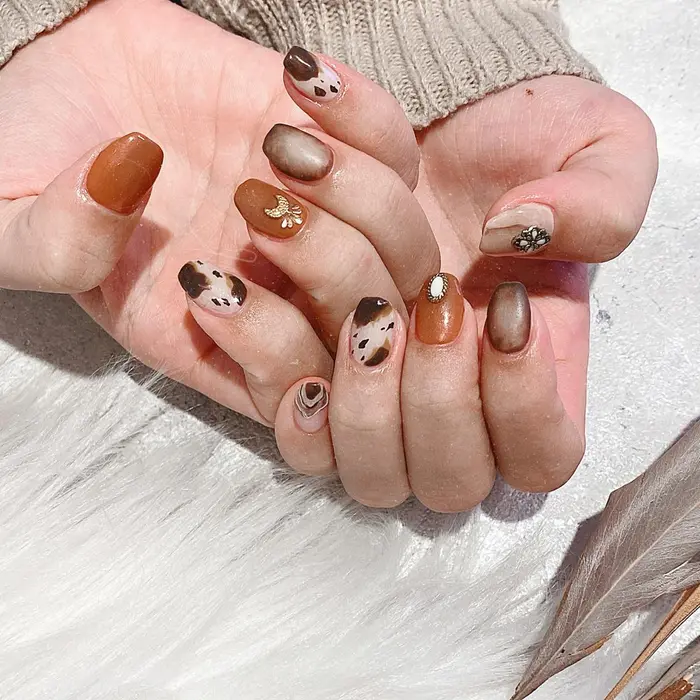 牛柄ネイル アニマル柄ネイル ボヘミアンネイル テラコッタネイル Chipieee所属 パラジェルサロン 原宿 Yukoのネイルデザイン ミニモ